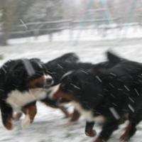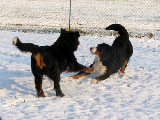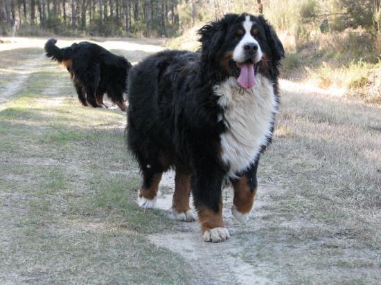 nos bouviers bernois vivent avec nous, entourés de chats, chevaux entre autres......